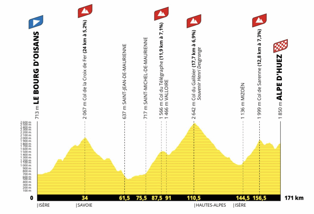 « LE grand rendez-vous est gardé pour la toute fin du Tour, la veille de l’arrivée, entre Bourg d’Oisans et l’Alpe d’Huez. Une quasi-Marmotte. »