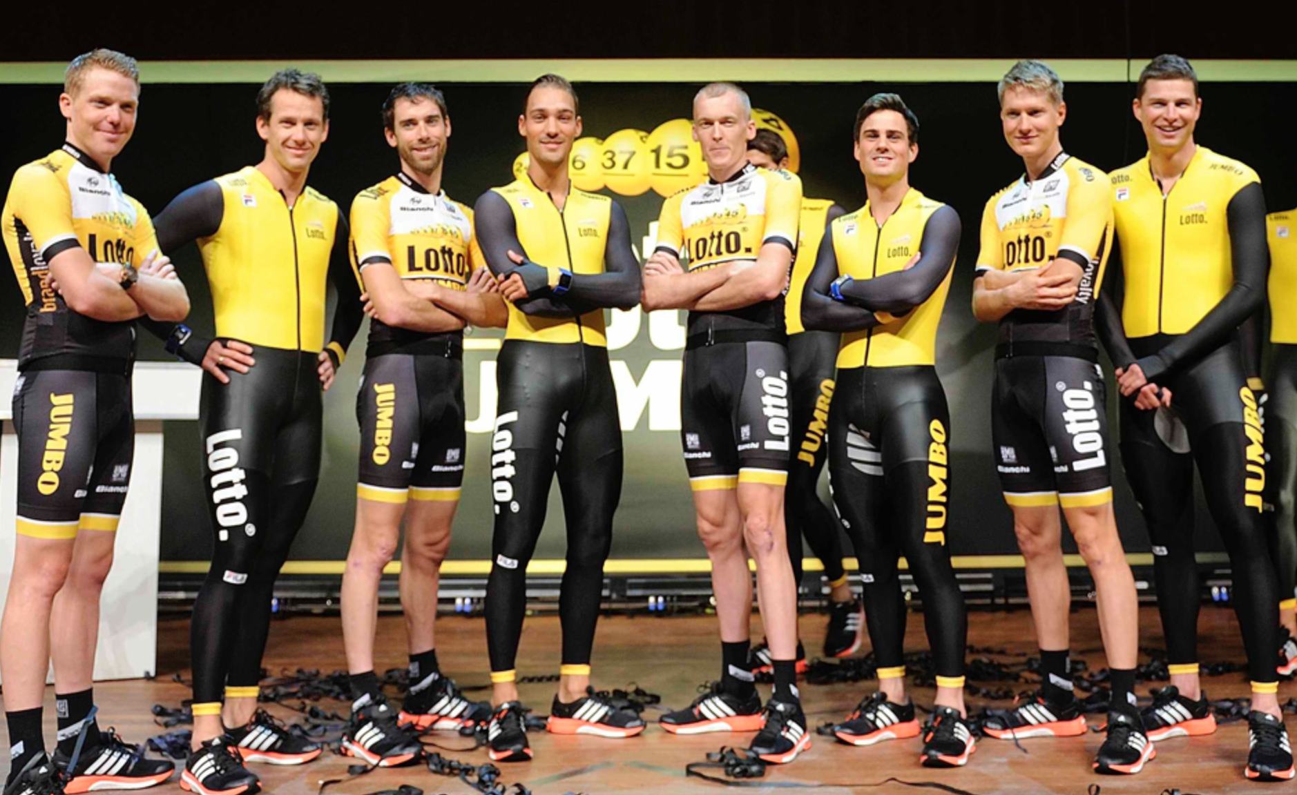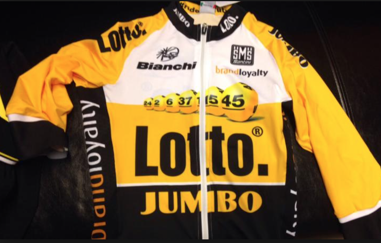 Voici le nouveau maillot LottoNL-Jumbo, qui succède au sponsor Belkin. Je sais pas vous, mais je trouve l’ensemble assez peu réussi. Et il faudra probablement prévoir un maillot alternatif pour le Tour, car l’organisation les obligera surement à trouver quelque chose qui ne pourra pas être confondu avec le maillot jaune.